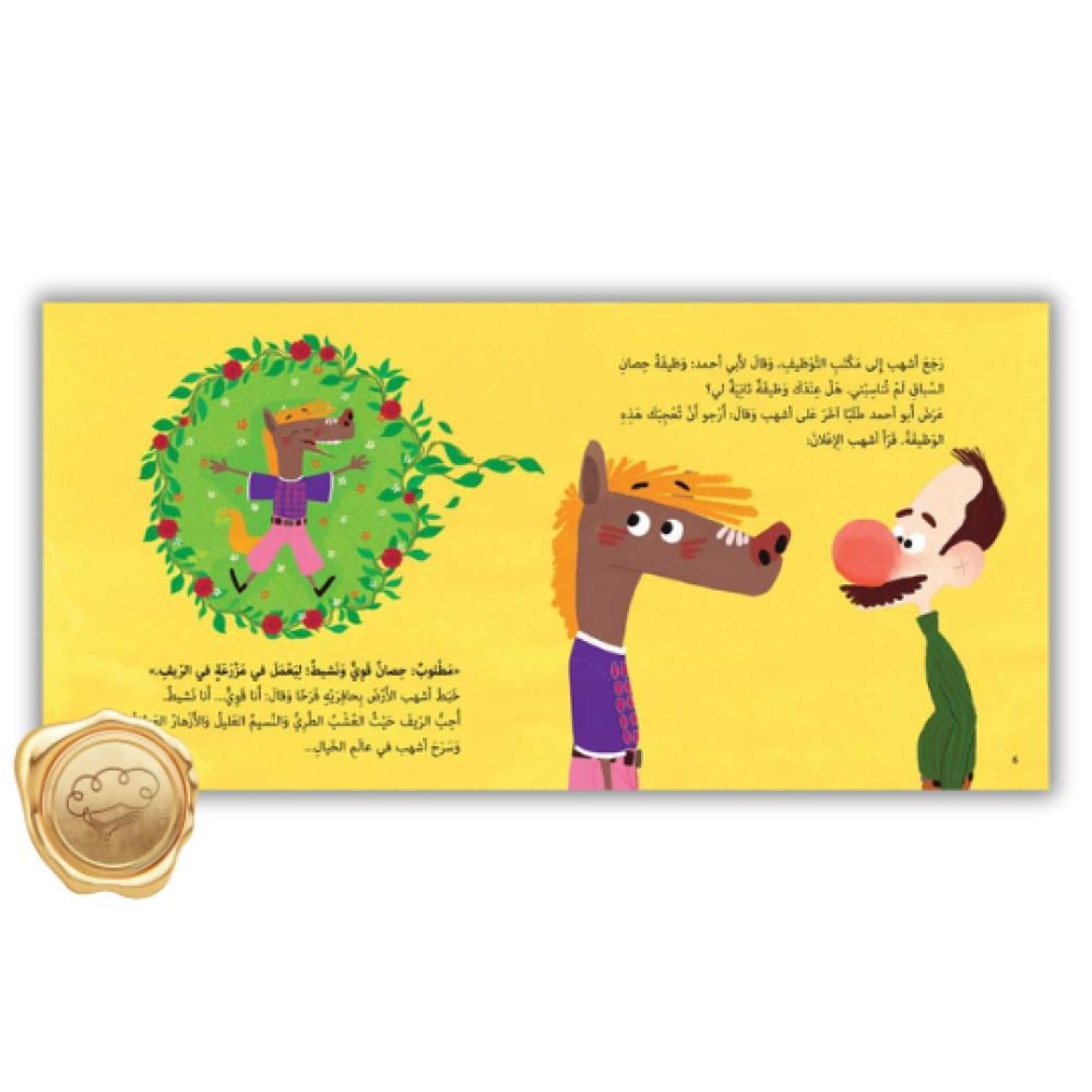 قصّة عن حصان صغير اسمه أشهب، يبحث عن وظيفة مناسبة له. يجرّب أشهب عدّة وظائف ويستبعدها جميعها إلى أن يلتقي بالمهرج مرجان. يا ترى ما هي الوظيفة الّتي سيجدها أشهب و تتناسب مع شخصيّته؟