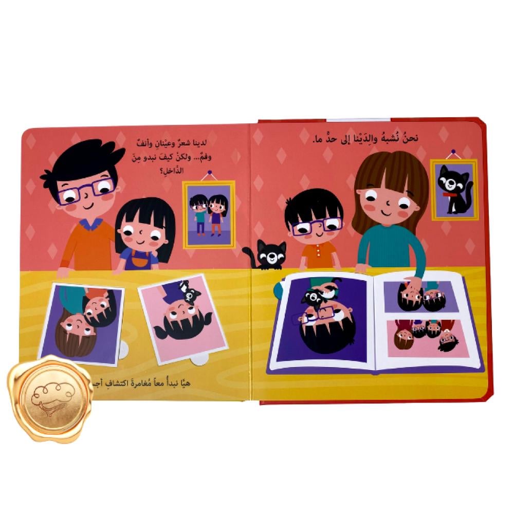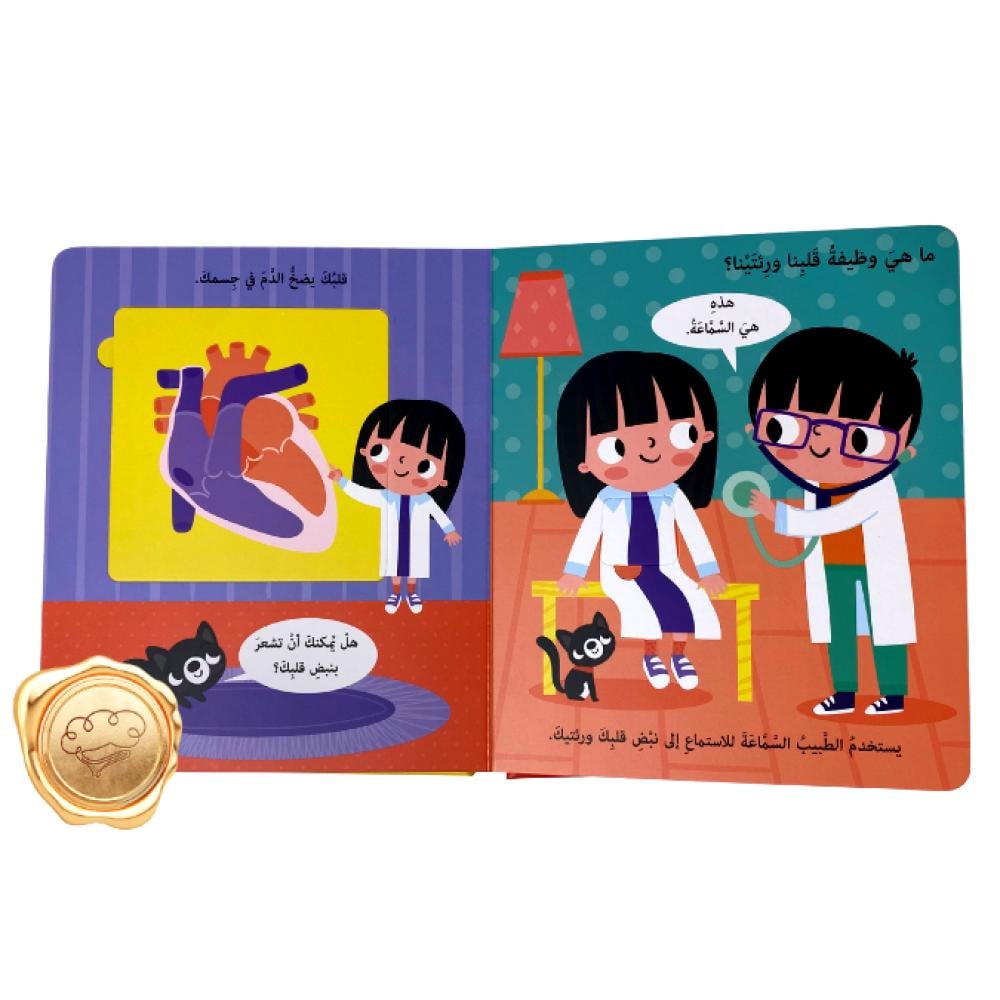 - تصميم تفاعلي: يحتوي الكتاب على رسومات ملونة ونوافذ منزلقة تساعد الأطفال على التفاعل مع أجزاء الجسم بطريقة مرحة.