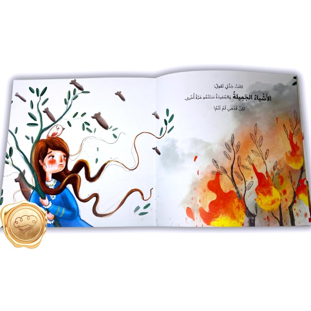 في خضم الحرب والدمار، تظل الأشياء الجميلة تنمو في القلوب. الأشياء الجميلة تأخذنا إلى قصة طفلة فقدت رجْلها وتبحث، بدعم جدّتها، عن الأمل في زراعة الجمال من جديد. قصة بسيطة لكنها تحمل رسالة قوية: “حتى لو سرق العالم أشيائك، لا يمنعك أن تزرع ما تبقى جميلًا.”
