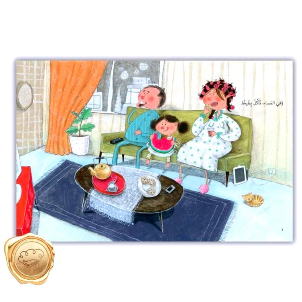 نورة بنت صغيرة تحب البطيخ كثيرًا، وترفض أن تأكل طعامًا غيره. ماذا سيحصل عندما تجد نورة يطيخة كبيرة على طاولة المطبخ؟