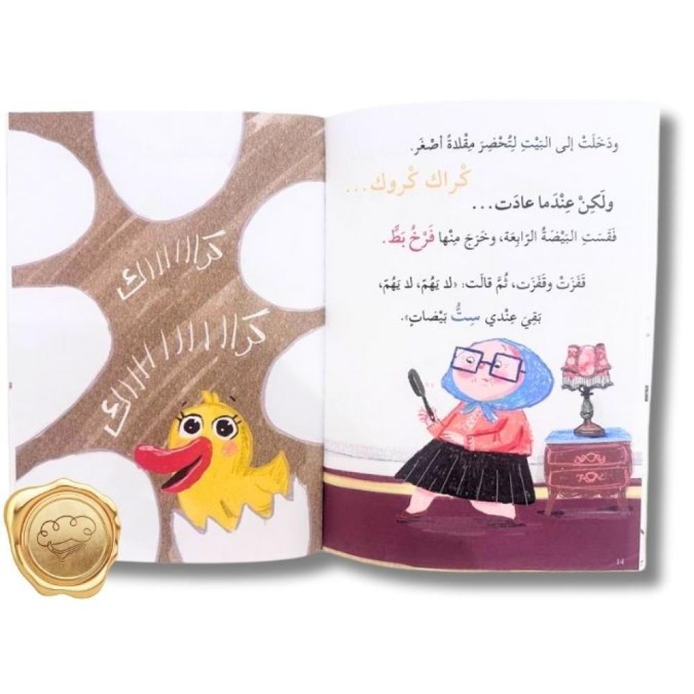 يحكي الكتاب قصة الجدة صباح التي أثناء ذهابها إلى السوق لشراء البيض تتفاجأ بسلة مليئة بعشر بيضات موضوعة بين الأعشاب. عندما تأخذها إلى المنزل، تقرّر إعداد عجة لتطعم الجيران. لكن ما إن تفقس هذه البيضات حتى تخرج مخلوقات مفاجئة: إوزة، بجعة، بطة، حمام، سمان... ثم تكتشف أن الثعلب هو من جمع هذه البيضات في السلة. في النهاية، تقرّر الجدة إعادة الصغار إلى أمهاتهم، وتشتري بيضًا جديدًا من مالها الخاص لتصنع العجة بصورة عادلة.