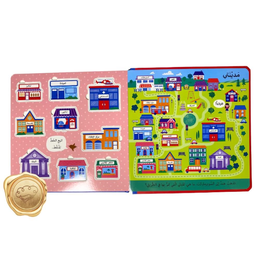 📘 الكتاب التفاعلي – المدينة (ورق مقوى مع قطع قابلة للفك والتركيب)