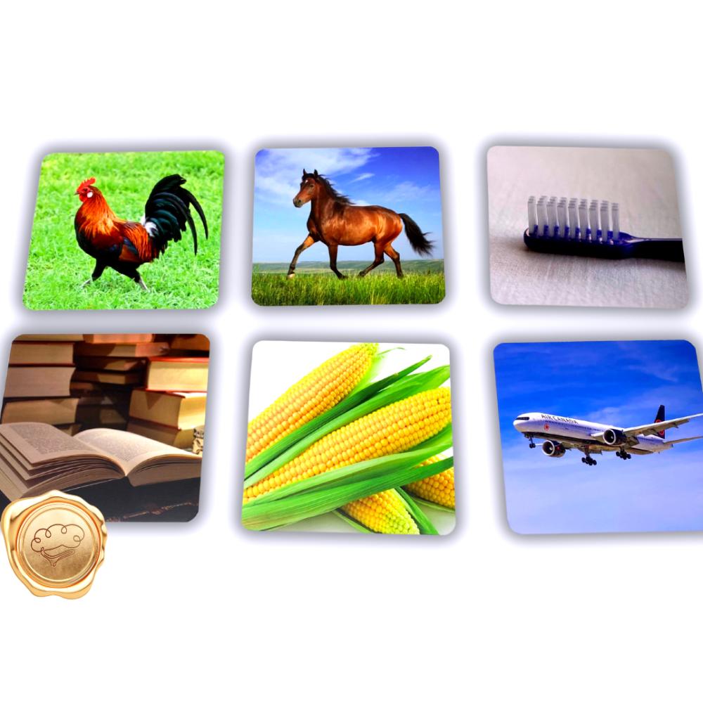 - توضيح الحرف والكلمة والصورة على كل بطاقة، مما يعزّز التعلم البصري واللفظي.