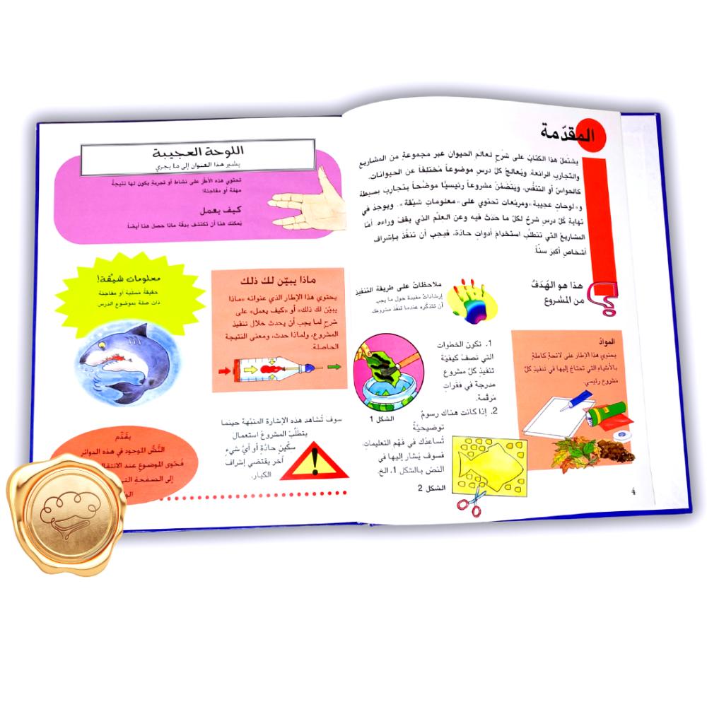- محتوى: تجارب علمية + شروحات + رسوم بيانية + أنشطة تفاعلية مع موضوعات متعلّقة بالحياة والحيوان