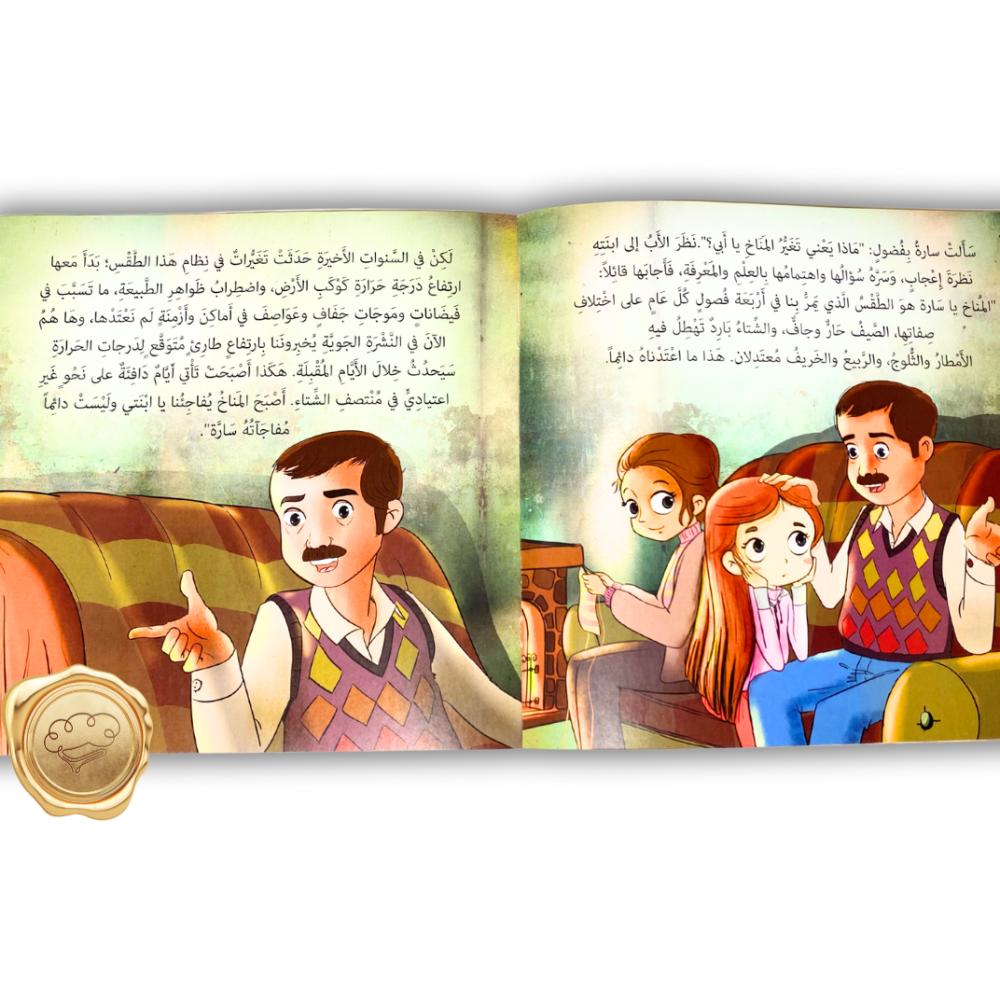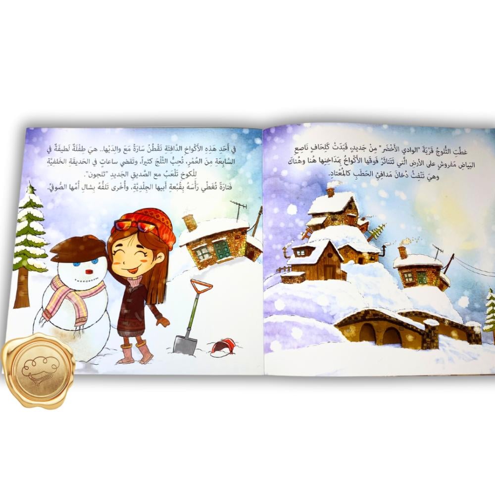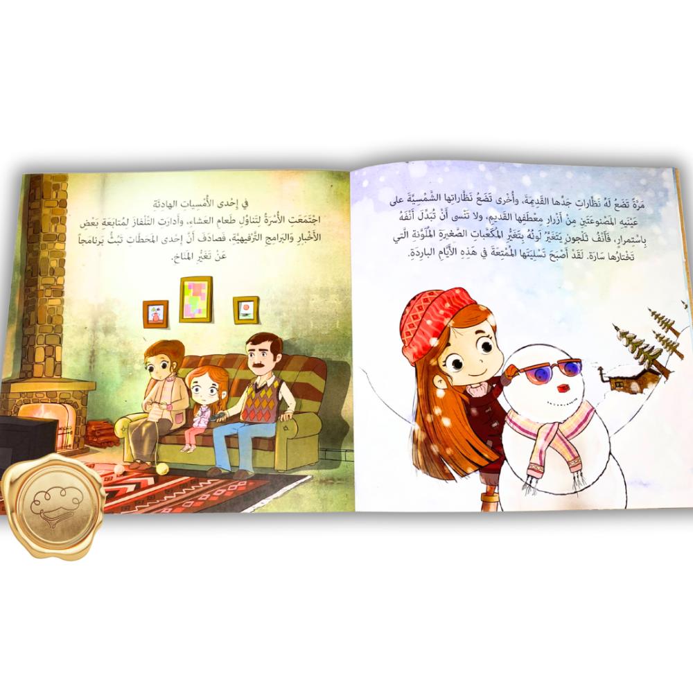 سارة طفلة ذكيّة تحب البحث والمعرفة، وصديقها المميز هو “ثلجون رجل الثلج”. يتغير شيء هذا الشتاء، فتقلق سارة على ثلجون بسب التغير المناخي، مما يدفعها لاستكشاف قصة المياه ودورة الماء في الطبيعة. القصة تجمع بين المتعة والعلم بطريقة بسيطة، لتعليم الأطفال عن المناخ، دور الطقس وتغير الفصول، وكيف يؤثر ارتفاع درجة الحرارة على عالم الثلج والمطر.