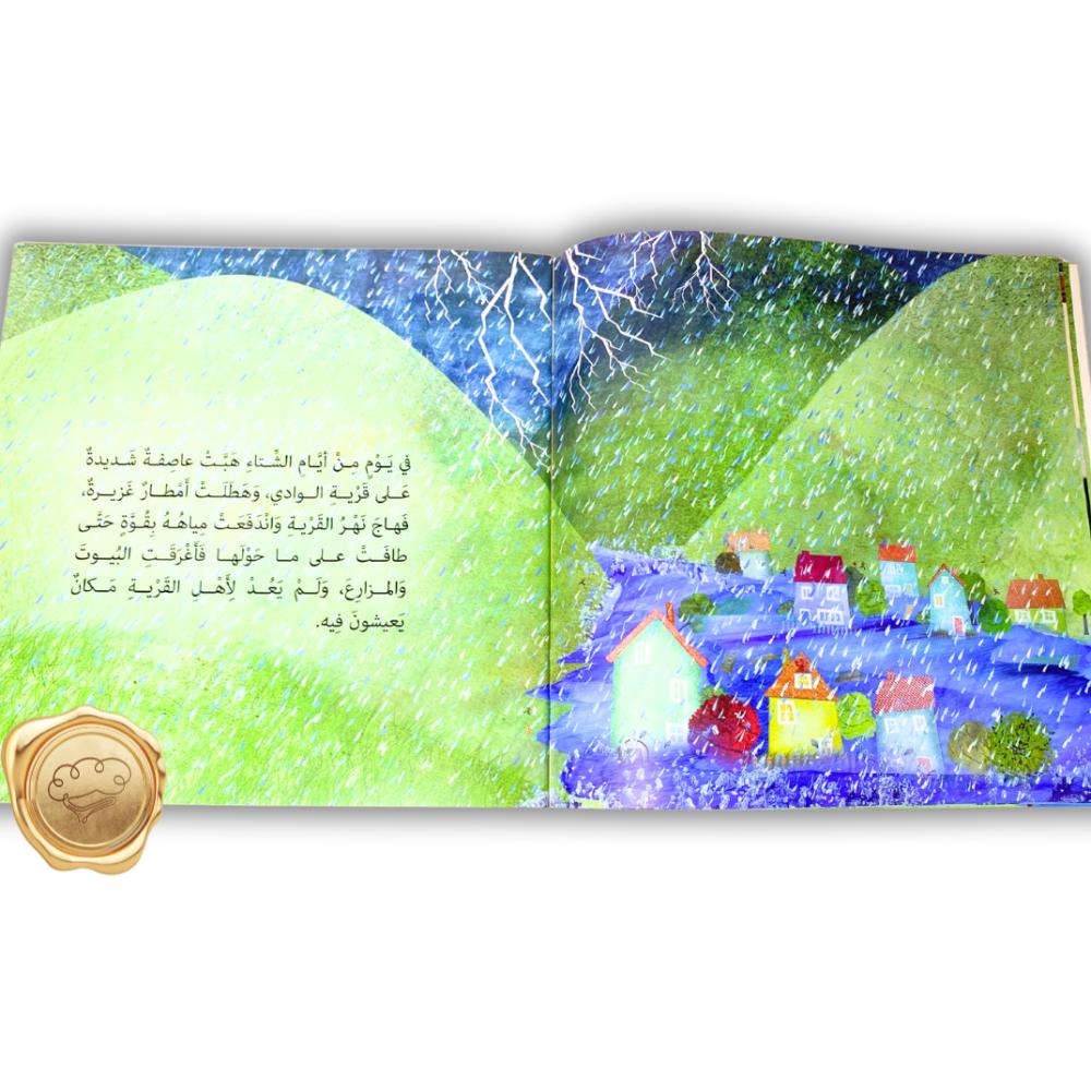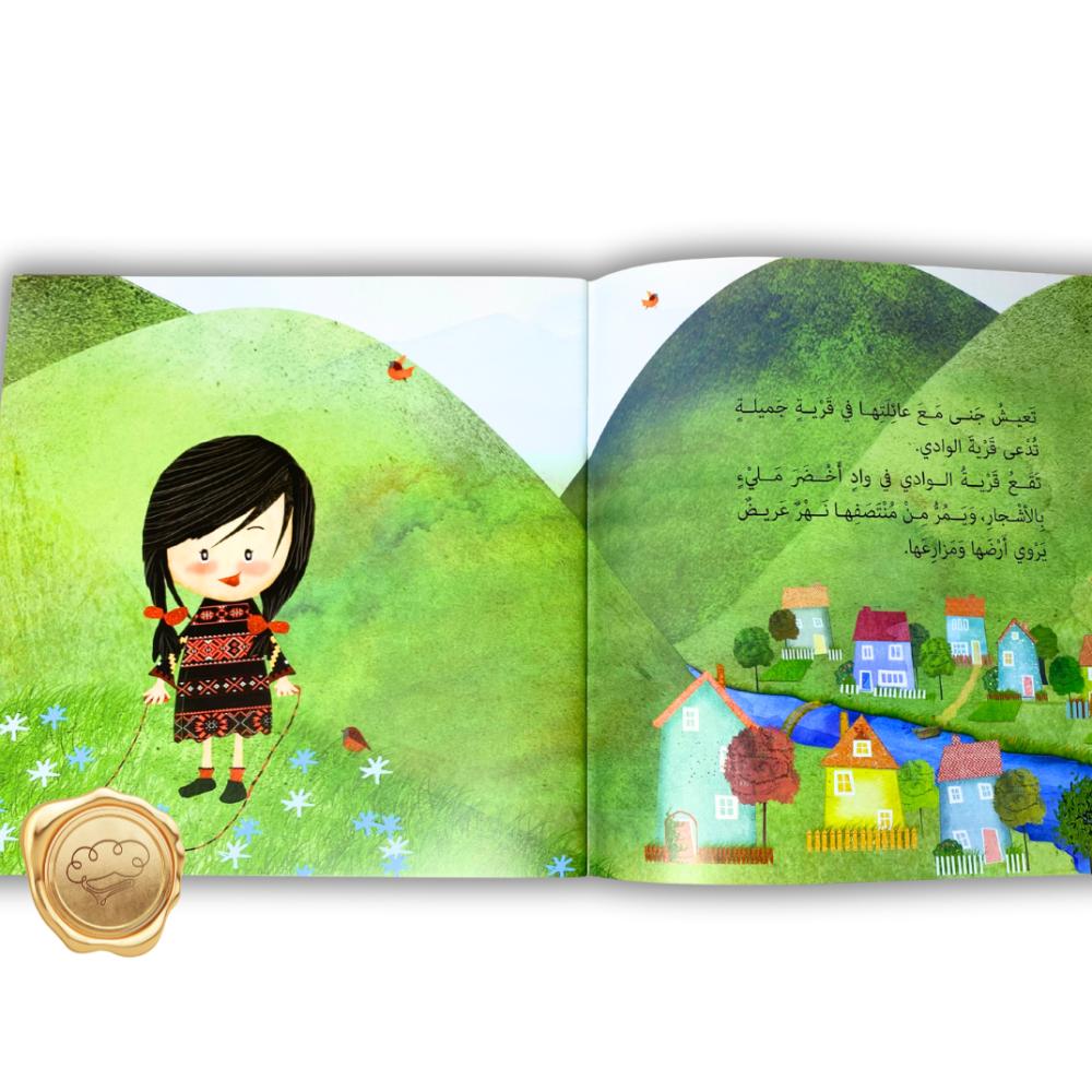 تقص علينا القصة حياة جنى الصغيرة التي تعيش تغييرًا كبيرًا عندما يفيض النهر في قرية الوادي فجأة، فيضطر أهلها إلى مغادرة بيوتهم وأشيائهم إلى مكان جديد. تتعلّم جنى معها كيف تتأقلم مع هذا الواقع الجديد، وتواجه مخاوفها من التغيير، خاصة أن بعض تفاصيل الحياة القديمة تصعب تركها وراءها. القصة ترمز إلى الصمود، والأمل، والتكيّف مع الظروف، وتدعونا للتفكير في كيفية بناء حياة جديدة بعد الخسارة.