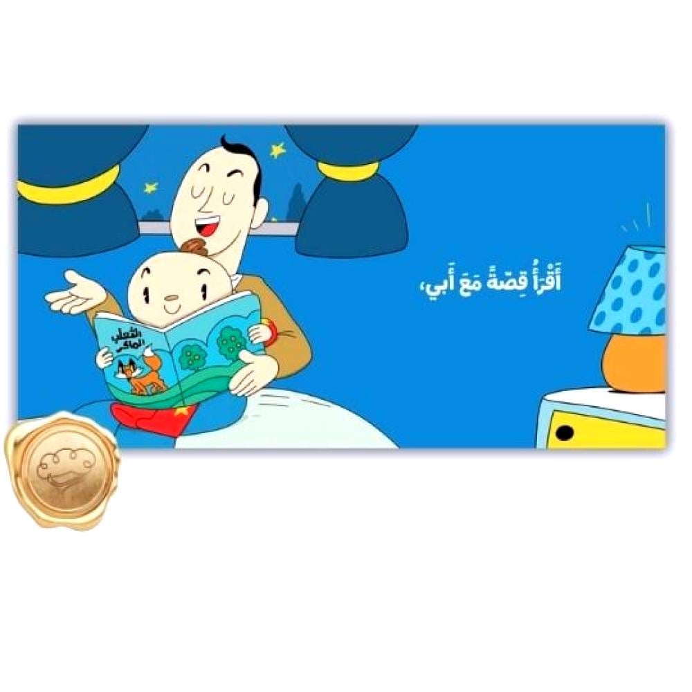 وفي آخر الكتاب صفحة تفاعلية يمكن للطفل فيها أن يقوم بتغطية آدم ومشمش قبل نومهما.