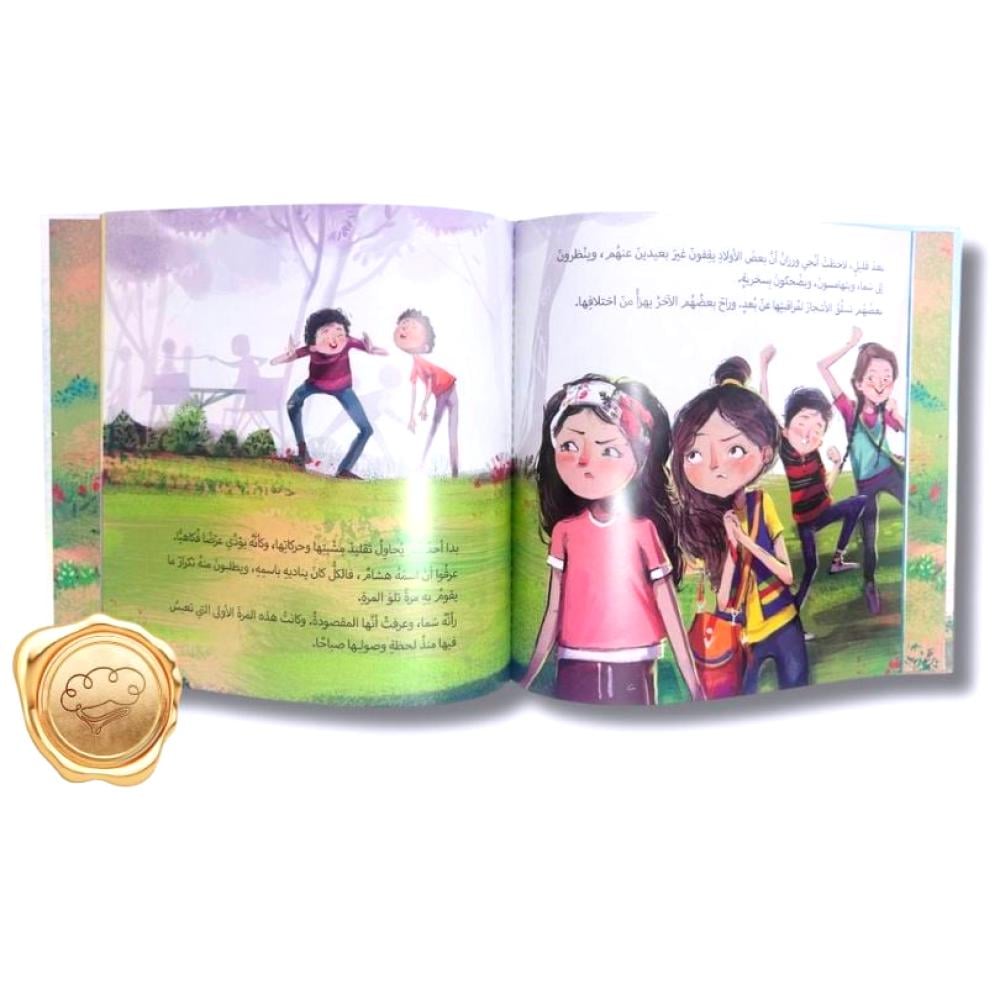 استغربَتْ شكلَها وطريقةَ نُطقِها للكلماتِ، وحاولتْ تجنُّبَها. لكنَّها سرعانَ ما اكتشفتْ قُدراتَها في أكثرِ من موقفٍ، ودافعتْ عنها حينَ تعرَّضتْ للتنمُّرِ بسببِ اخْتِلافها.
