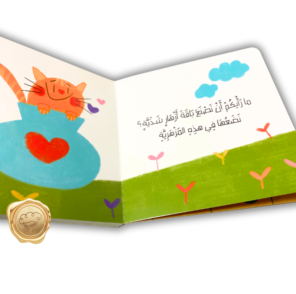 - قصة مصمَّمة لتحفيز التفاعل بين الطفل والكتاب بطريقة تعليمية.