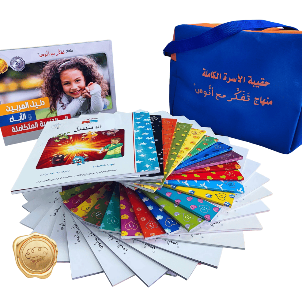 لأن الأسرة هي المحضن التربوي الأول الذي يصنع الإنسان الذي ترقى به حضارة أمتنا، عني مركز التفكر للتدريب والتطوير التربوي بتوفير أدوات تربوية عملية للنهوض بدور الآباء في بناء شخصية أبنائهم وفق الرؤية الشمولية التي يرتكز إليها منهاج التفكر، وهي تحقيق تنمية متكاملة للأفراد روحية ونفسية وإبداعية وأخلاقية، من خلال مجموعة الآباء التي تضم دليل المربين والآباء، ومجموعة القصص المنهجية سلسلة الحب، وألبوم الأناشيد، لتشكل معاً برنامجاً تربوياً متكاملاً يضم أنشطة عملية ممتعة يطبقها أفراد الأسرة معاً من خلال جلسة التفكر ( 30 – 45 ) دقيقة مرة أسبوعياً لمدة 46 أسبوعاً.