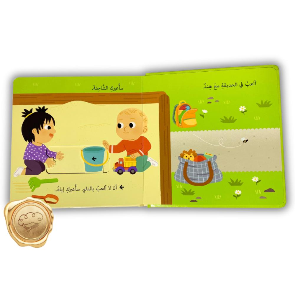 • قصص قصيرة ورمزية: يتميز الكتاب بقصة رمزية تُظهر للأطفال كيفية مشاركة الألعاب والأشياء المفضلة مع الآخرين من خلال مواقف حياتية يومية.