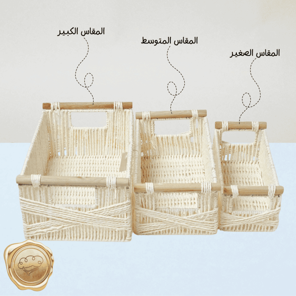 - سلة متوسطة مقاس 32×12.5×18سم .. يشمل (السلوفان + شريطة + كرت بسيط)