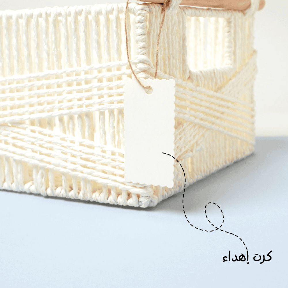- سلة صغيرة مقاس 27×13×10سم .. يشمل (السلوفان + شريطة + كرت بسيط)