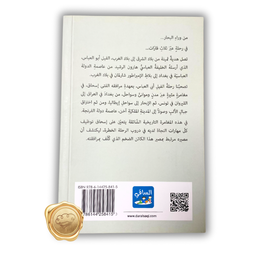 رحلة فيل تأخذنا في مغامرة تاريخية شيّقة: بداية من بغداد في عصر الخلافة العباسية، مرورًا بمدنٍ وسواحل، ثم عبور البحار والجبال إلى أقاصي الغرب — حيث الفيل “أبي العباس” يصاحب الفتى “إسحاق”. رحلة تجمع بين التاريخ، التحدّي، الاكتشاف، وتحفّز خيال الطفل على السفر عبر الزمن والأماكن.