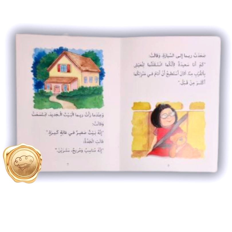 كانت ريما تستعد للذهاب إلى بيت الجد والجدة لقضاء الليلة هناك. وضبت حقيبتها، ثم قبلت والدتها ووالدها وودعتهما. صعدت ريما ألى السيارة، وقالت : "كم أنا سعيدة لإنكما انتقلتما للعيش بالقرب منا. الآن أستطيع أن أنام في منزلكما أكثر من قبل ."