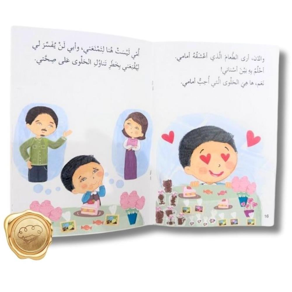 يُعاني (سمير» مَرَضَ السُّكَّرِيِّ وَيَنْبَغِي لَهُ أَنْ يَتَناوَلَ نِظامًا غِذائِيَّا مُحَدَّدًا. وفي أحَدِ الأيام، يَجِدُ أَمَامَهُ طَاوِلَةً مَلِيئَةً بِالحَلْوى ويختارُ قِطْعَةً مِنْها. ماذا يَفْعَل ؟ إذا أَكَلَهَا يَمْرَض، فَهُوَ مَمْنوعٌ مِنْ تَناوُلِ السُّكَّر. يا لَهُ مِنْ امْتِحَانٍ صَعْب!