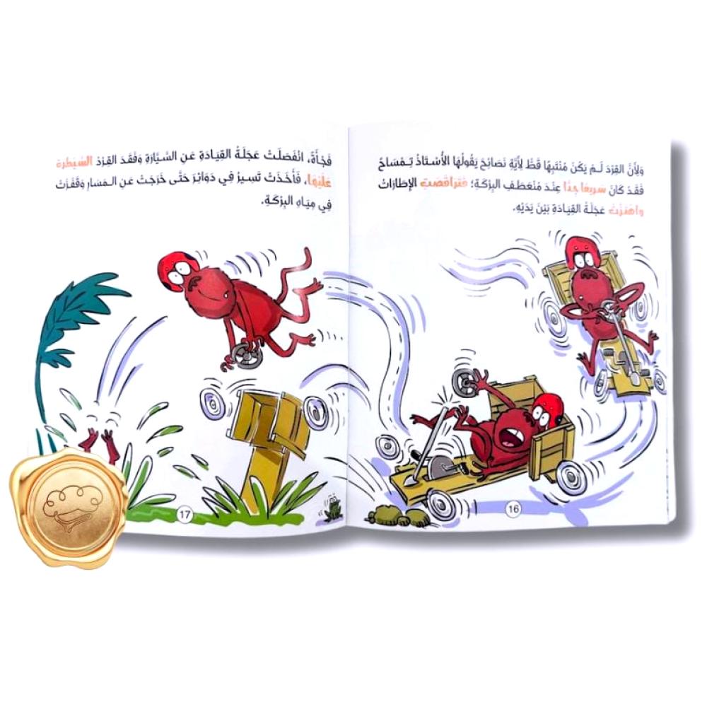 عِنْدَمَا خَطَطَ الأُسْتَاذُ تِمْسَاحٌ لِسِبَاقِ سَيَّارَاتٍ، كَانَ القِرْدُ مُتَحَمِّسًا للغَايَةِ لَكِنَّهُ لَمْ يُنْصِتُ لِلْإِرْشَادَاتِ وَالتَّعْلِيمَاتِ، وَهُوَ مَا أَدَّى لَأَنْ تَكُونَ سَيَّارَةُ فَرِيقِهِ غَيْرَ آمِنَةٍ! هَلْ سَيَسْتَمِرُّ السَّبَاقُ أَمْ أَنَّ القِرْدَ أَفْسَدَهُ عَلَى الجَمِيعِ؟ هَذِهِ القِصَّةُ تَمْنَحُ الْأَطْفَالَ الفُرْصَةَ لِاسْتِكْشَافِ مُشْكِلَةِ عَدَمِ الْإِنْصَاتِ لِلإِرْشَادَاتِ وَالتَّعْلِيمَاتِ وَقِلَّةِ التَّرْكِيزِ.. بِالْكِتَابِ اقْتِرَاحَاتٌ لِأنْشِطَةٍ وَفِكَرٍ يُمْكِنُ مُنَاقَشَتُهَا مَعَ الأطفَالِ حَوْلَ الْكِتَابِ وَمُحْتَوَاهُ.