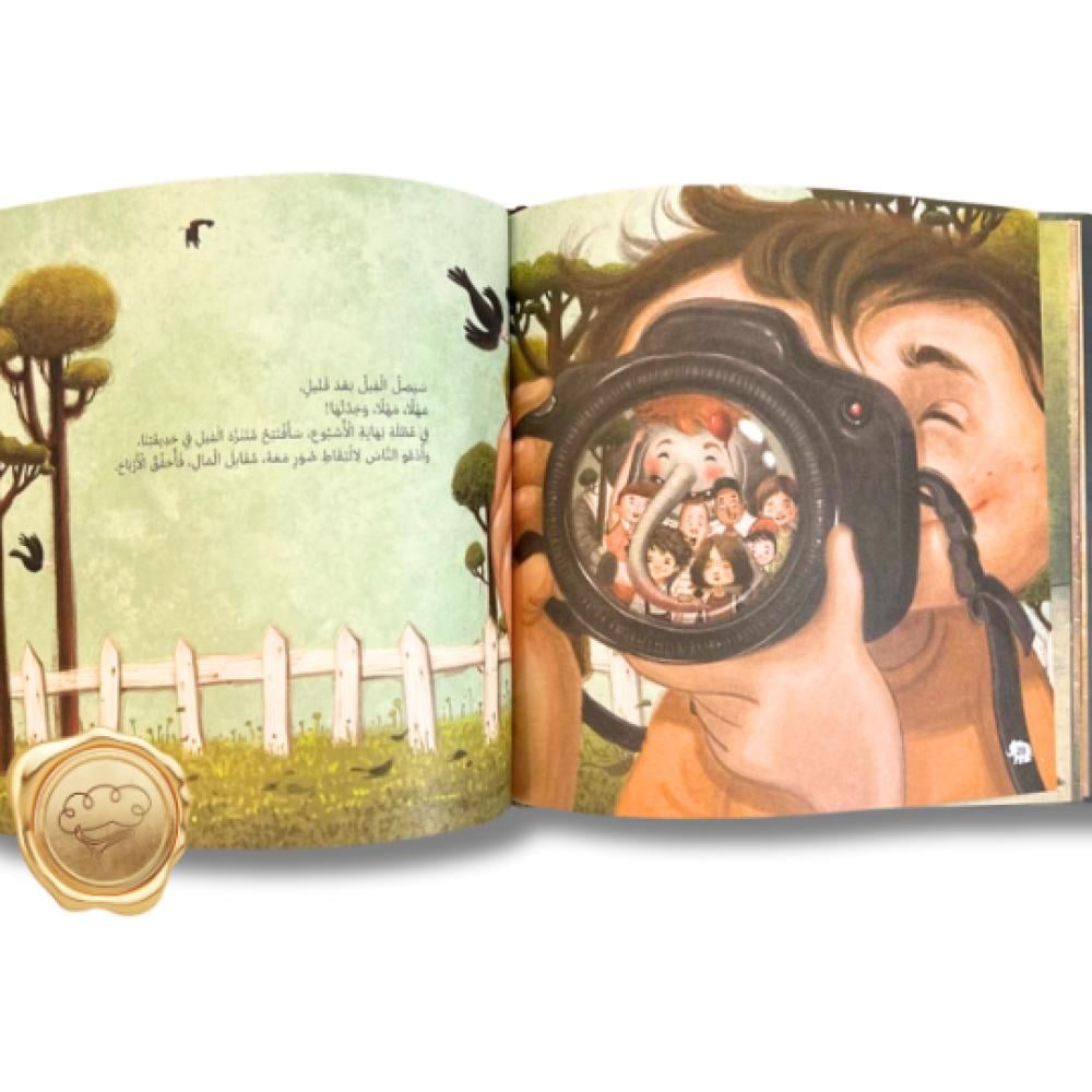 سَيَصِلُ الْفِيلُ بَعْدَ قَلِيلٍ، وَلَمْ أَتَفَقَّدِ الْمَالَ فِي حَصَّالَتِي! هَلْ سَتَكْفِي مُدَّخَرَاتِي؟ حَتَّى لَوْ جَمَعْتُ مَصْرُوفِي الْيَوْمِيَّ شُهورًا وَسَنَوَاتٍ، لما كان كافيًا لِرِعَايَةِ فِيلٍ! لكنَّ الفيلَ وَصَلَ.. فماذا حَدَثَ؟