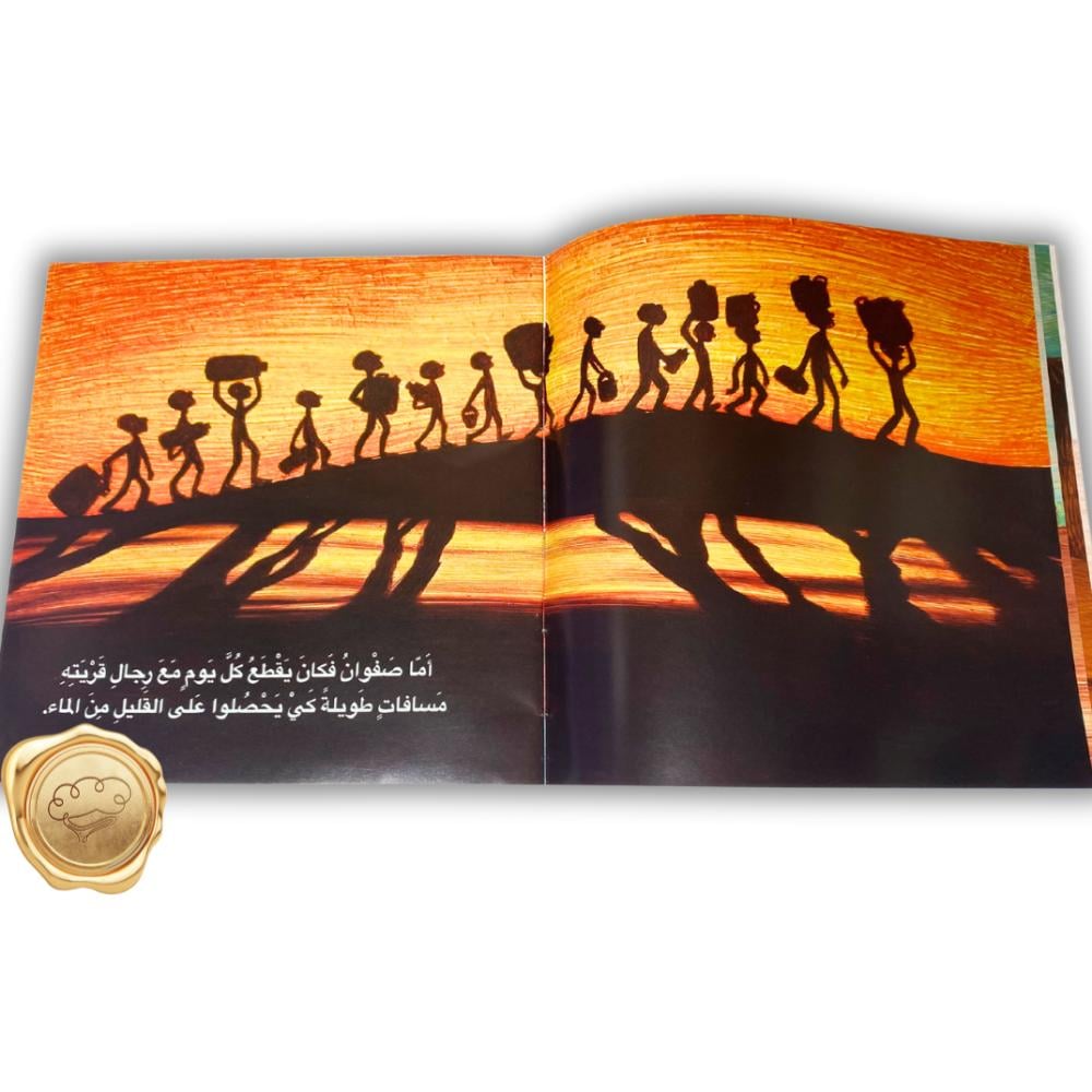تحكي القصة عن الطفل صفوان الذي يعيش في قرية تعاني من الجفاف ونقص الماء. بدلًا من الاستسلام للواقع، يقرر أن يبحث عن حل بنفسه، فيخوض رحلة مليئة بالتحديات ليجد مصدرًا ينقذ به قريته.