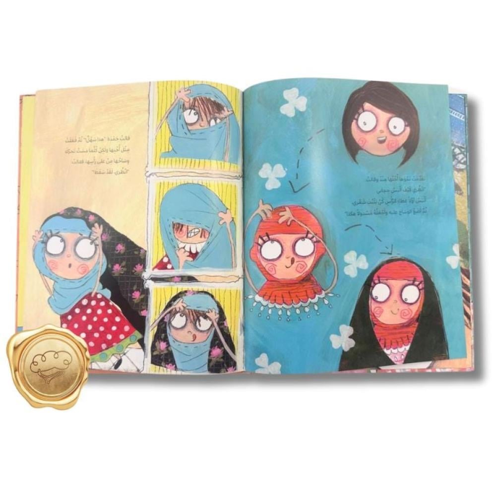 لقد كبرت حمدة وحان الوقت كي ترتدي الحجاب مثل أخواتها الأربع الأكبر منها. كل أخت تحاول تعليم حمدة كيفية ارتداء الحجاب على طريقتها بواسطة مشابك ودبابيس. لكن على حمدة أن تكتشف طريقة خاصة بها تتماشى مع نمط حياتها النشيطة والمرحة.