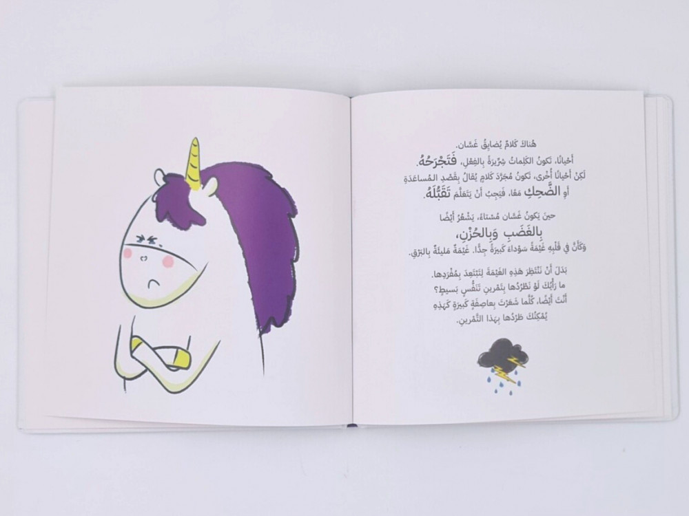..غسان هو حصان صغير أحادي القرن يشبة الآخرين, ولكن.. شعره بألوان قوس القزح, وعندما ينفعل, يصبح بلون واحد, بحسب انفعاله.