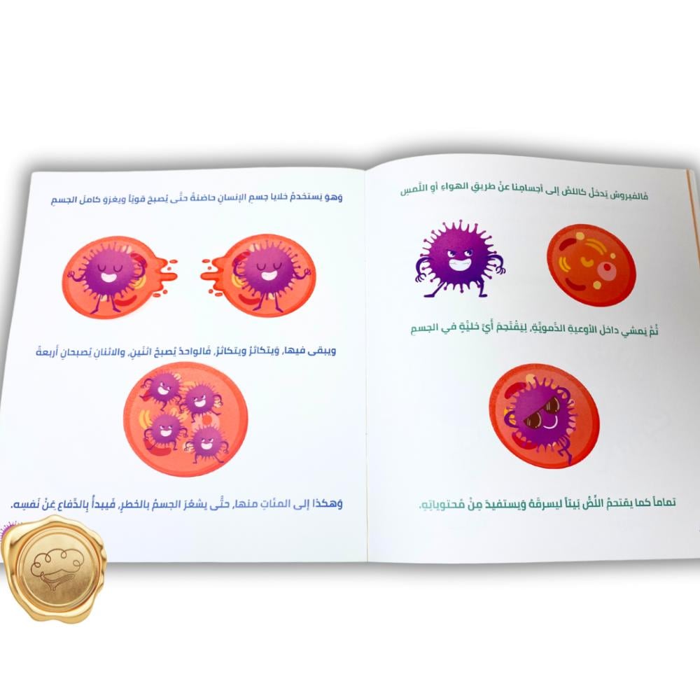 الكتاب يقدّم للأطفال مفهوم الفيروسات بطريقة علمية مبسطة وجذّابة. تروي د. علياء كيوان – صاحبة خلفية في البيولوجيا – كيف يكون الفيروس كائن صغير يتسبب بالمرض، مع شرح الفرق بينه وبين البكتيريا بطريقة يسهل على الأطفال فهمها. القصة تستخدم اللغة البسيطة والخيال لتوصيل معلومات علمية؛ وتشجع الطفل على الفضول والتساؤل حول ما يحدث داخل الجسم.