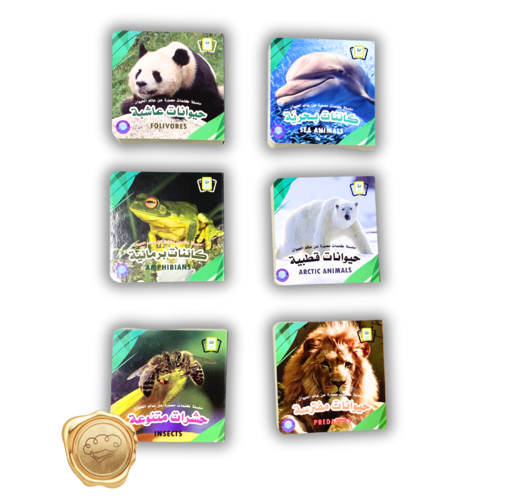 مجموعة تعليمية ممتعة تضم 12 كتيّبًا صغيرًا من الكرتون المقوّى، صُممت خصيصًا لتكون أول نافذة للطفل لاستكشاف عالم الحيوانات. يحتوي كل كتيّب على صور حقيقية وواضحة لحيوانات في بيئاتها الطبيعية، مع كتابة أسماء الحيوانات بالعربية والإنجليزية، مما يجعلها أداة مثالية لبناء المفردات وتنمية الإدراك البصري لدى الطفل بطريقة بسيطة وجذّابة.