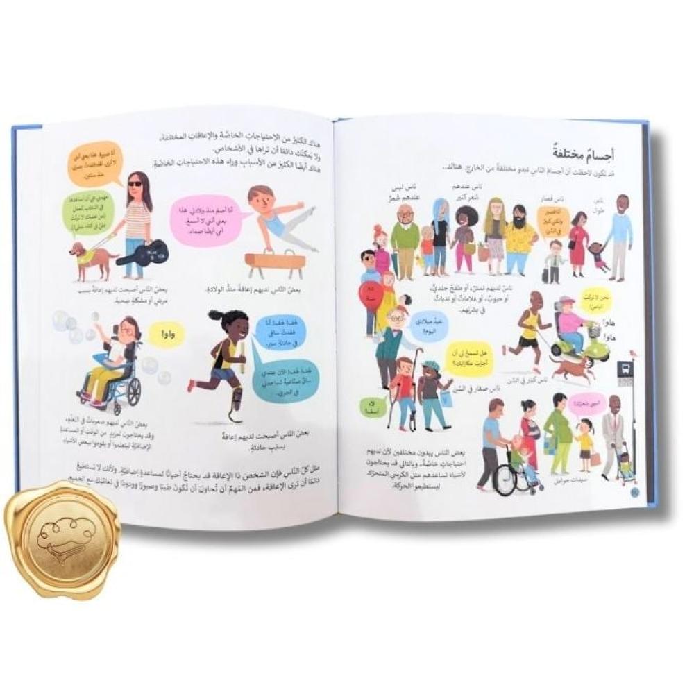 نحن مختلفون عن بعضنا البعض.. ولكننا أيضًا متشابهون! هذا الكتاب رحلة استكشافية مُمتعة تساعد الأطفال على فهم الآخرين والتعامل معهم بشكل إنساني وعادل، بغض النظر عن الاختلاف في عُمر الآخر، أو لون بشرته، أو قدراته العقلية أو الجسمانية، أو دينه أو ثقافته من خلال موضوعات متنوعة؛ مثل لون البشرة، وطريقة التواصل، والأكلات، والاحتفالات وغيرها، يُتيح هذا الكتاب لأطفالنا فرصة لمناقشة ما يجعل كل واحد منا مميزًا ومختلفًا عن الآخر؛ ذلك أن فهم الاختلافات يساعد على احترام الآخر واحترام الذات عند الطفل، ويجعل المجتمع أكثر عدالة ومساواة.