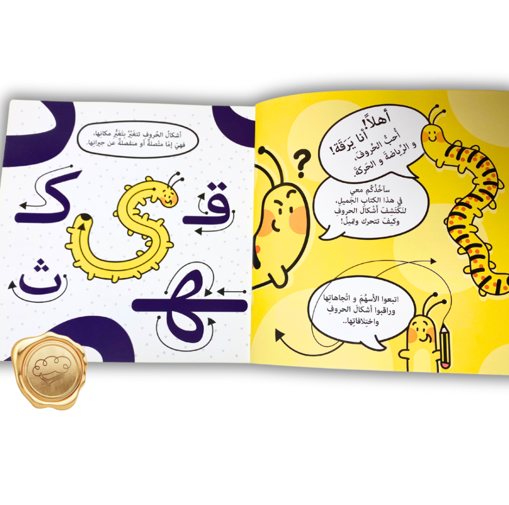 كتاب تعليمي مخصص للأطفال، يأخذهم في جولة ممتعة عبر الحروف العربية لِيُظهِر كيف تتغير أشكال الحروف عندما تتصل بحروف أخرى أو تكون منفصلة. من خلال الرسوم التوضيحية وأسهم الإرشاد، يتعلّم الطفل رسم الحروف بطريقة صحيحة، ويفهم كيف ترتبط الحروف ببعضها لتكوين كلمات وسلامة اللغة.