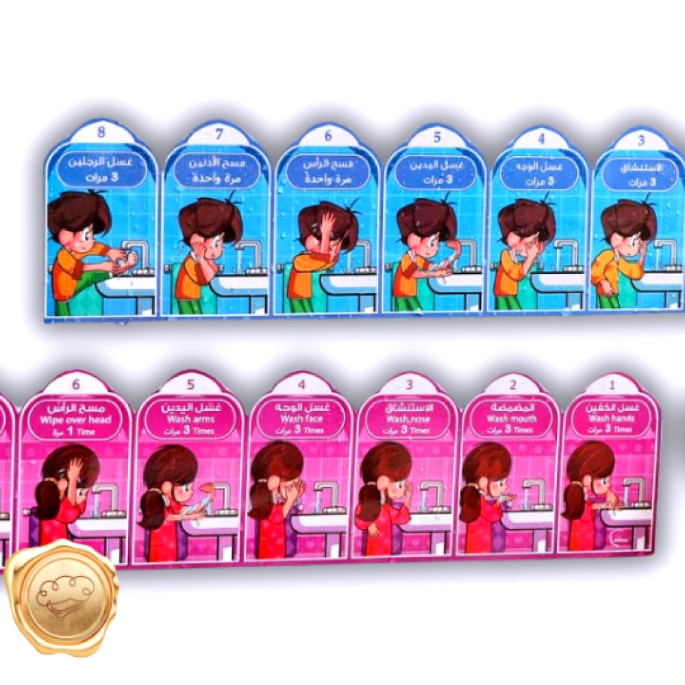 لمساعدة الطفل على تذكر خطوات الوضوء أثناء الوضوء