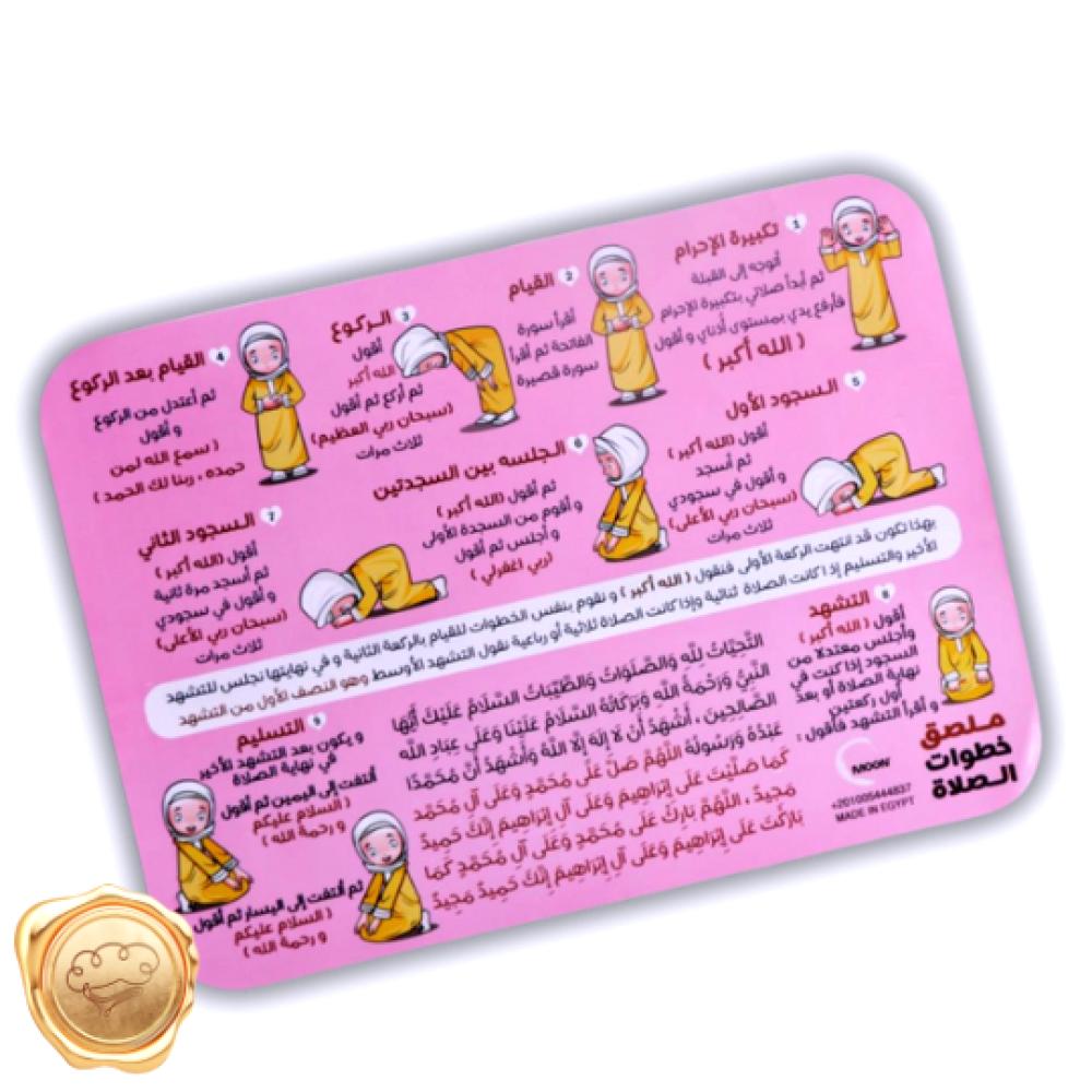 مطبوع عليها خطوات الصلاة بالترتيب تساعد الاطفال على