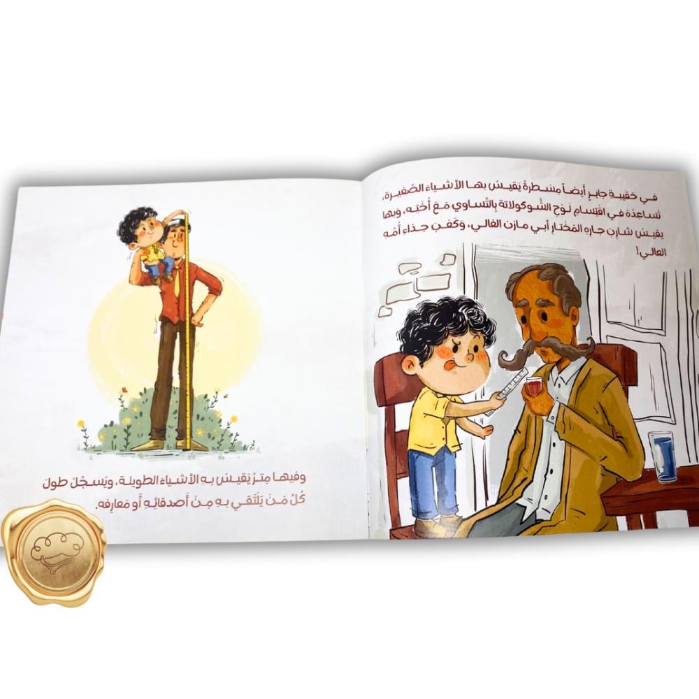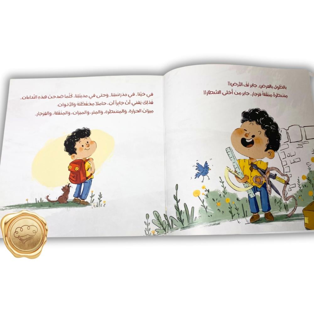في حقيبة الطفل جابر توجد أدوات كثيرة: ميزان حرارة، مسطرة، متر، منقلة، وفرجّار. وبينما يستخدم هذه الأدوات في حياته اليومية، يتساءل جابر إن كان بإمكانه قياس ما هو “غير مرئي” — مثل الصداقة. بين كل قياس وطرف، تبدأ رحلة فكّرية وقياسية تمزج بين الأدوات الهندسية ومشاعر العلاقات الإنسانية، في قصة بسيطة وعميقة في آن واحد.