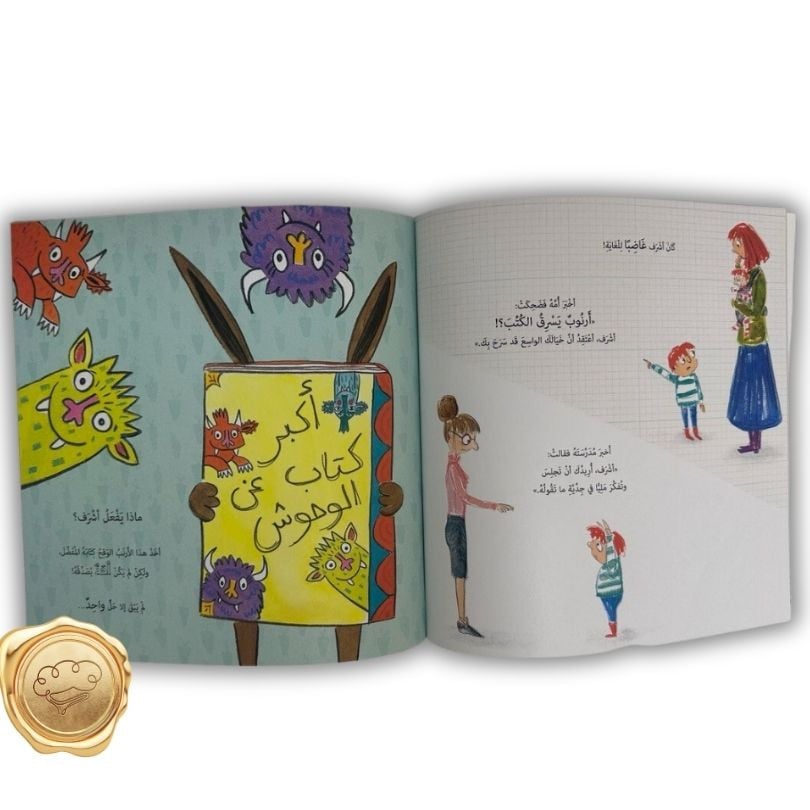 هل تستطيع أن تساعدنا في العثور عليه؟لنعمل معا للقضاء على سارق الكتب! الرجاء الأتصال بالشرطي بندق في نقطة الشرطة.