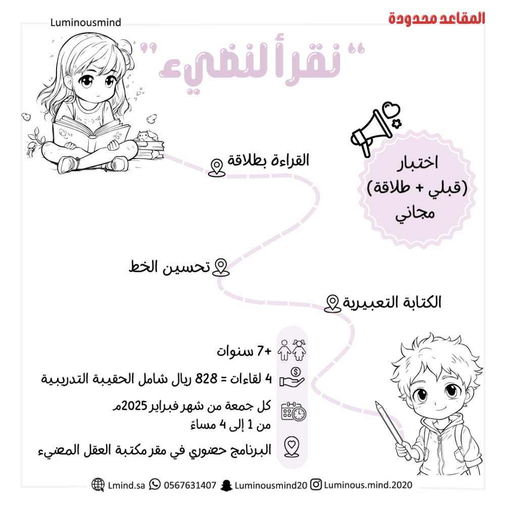 - الموقع : اللقاءات حضورية في مقر المكتبة (حي الزهراء -المنارة سكوير بجانب سوق الشاطئ)