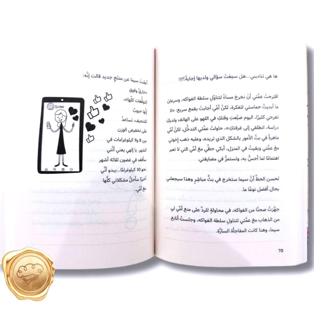 فماذا فعلَتْ صديقتُنا؟ هل تمكَّنتْ من تأمين المبلغ المطلوب للحصول على هذا الدواء؟ وهل كانت نتائجه مضمونةً حقًّا أم أنَّ له أعراضًا لم يذكُرْها الإعلان؟ هذا ما سنعرفُه في هذا الكتاب المفعَم بالعواطف من ’’ يوميَّات مراهقة بدينة‘‘..