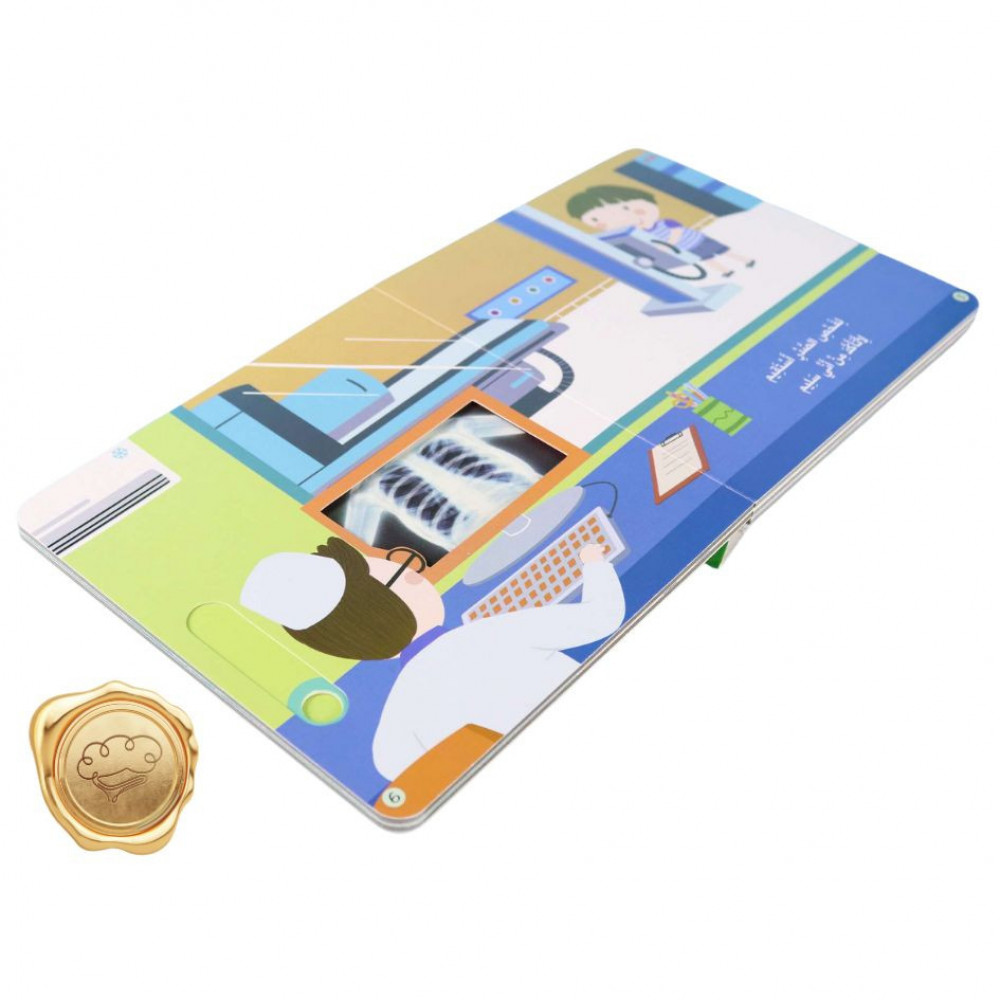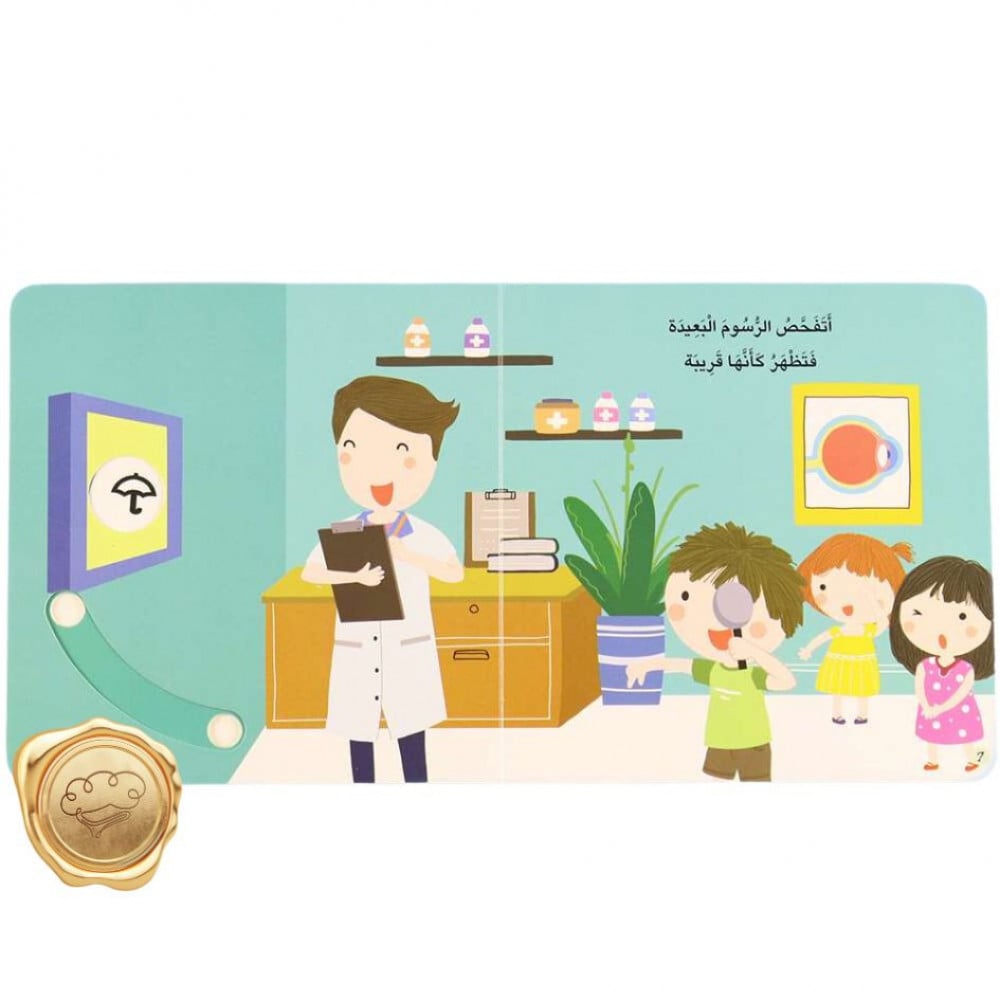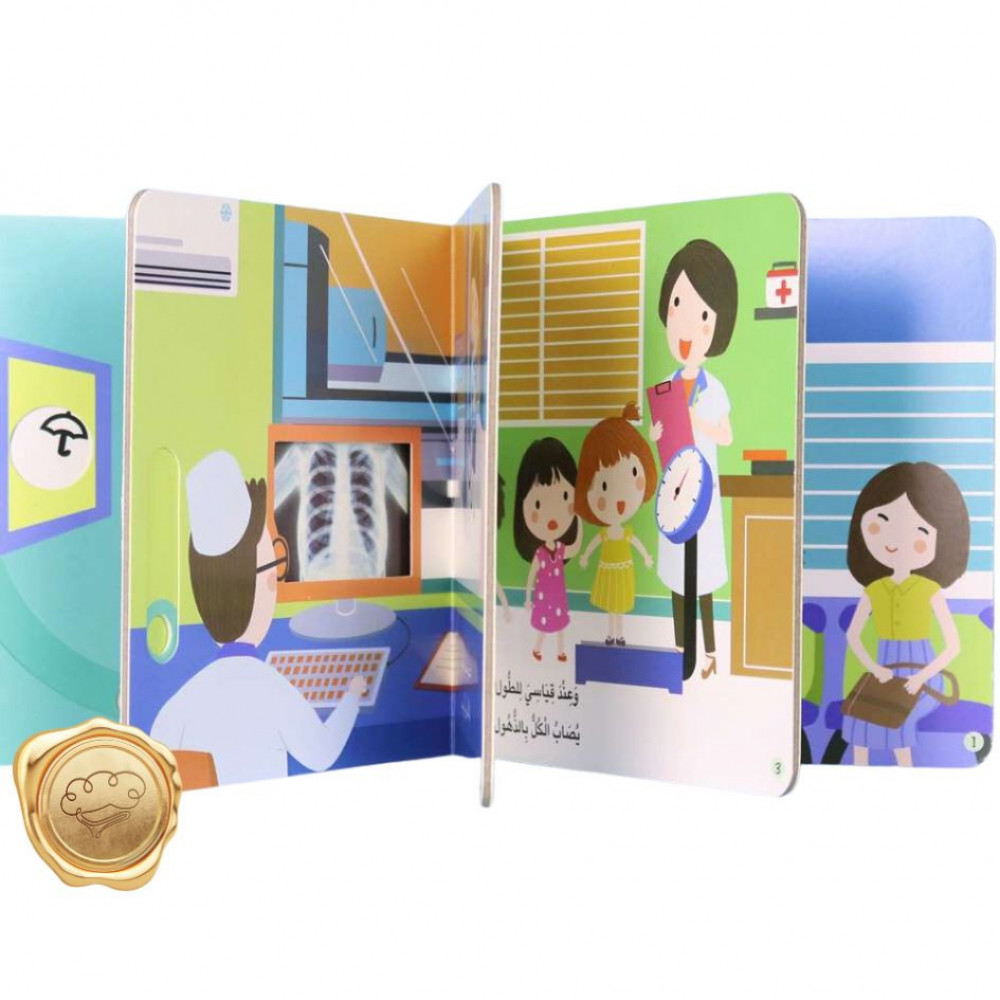 تتناول هذه القصّة الوقت الّذي يمضيه الأطفال في المركز الصّحّيّ عند الضّرورة، والفحوصات العديدة الّتي يجري الطبيب لهم، كلّ هذا بأسلوب تفاعليّ مميَّز يُشير من خلاله الطفل إلى أشياء معيّنة في القصّة، فيتعرّف كيف تعمل سماعة الطبيب، وجهاز فحص الصدر، ولوحة فحص النَّظر، وذلك لجذب الطّفل إلى القراءة وتصفّح القصّة باستمتاع، ولفت اهتمامه إلى ضرورة الحفاظ على صحّته وزيارة الطّبيب كلّما دعت الحاجة لذلك.